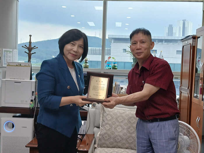 | ▲ [사진] 신현녀 용인특례시의원이 쥬네브 썬월드 관리단으로부터 감사패를 수상하였다. |