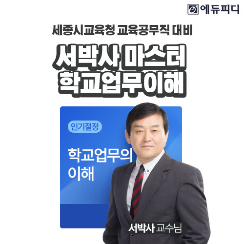 에듀피디가 선보이는 ‘서박사 마스터 학교업무이해’ 단기속성 강좌는 국내 유일 세종시교육청 교육공무직 전용으로 선보이는 맞춤 강의로, 출제가 유력한 학교 업무의 종류 및 개념을 명료한 설명으로 알려주고 효율적인 학교 업무 실전에 필요한 내용과 노하우를 체계적으로 정리해 준다.