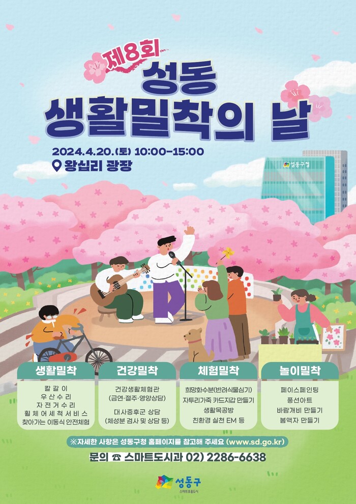 성동구는 2019년부터 주민의 일상에 도움이 되는 다양한 생활밀착형 서비스를 제공하고, 가족과 이웃간의 화합의 장을 마련해왔다. 이번 행사는 올해 처음 개최되는 생활밀착의 날로 왕십리광장 남북측 양측에서 다양한 행사와 체험프로그램이 운영된다.
