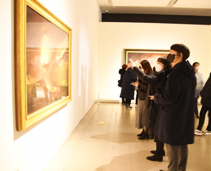| ▲ 중계사회복지관 종사자들이 영국테이트미술관 특별전을 관람하고 있다. (사진제공=노원구청) |