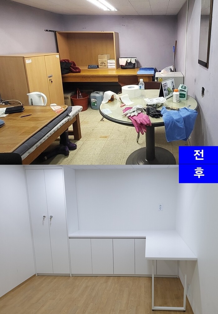 | ▲ 학교 청소·급식 노동자 휴게실 개선 전후 모습. (사진=노원구청 제공) |
