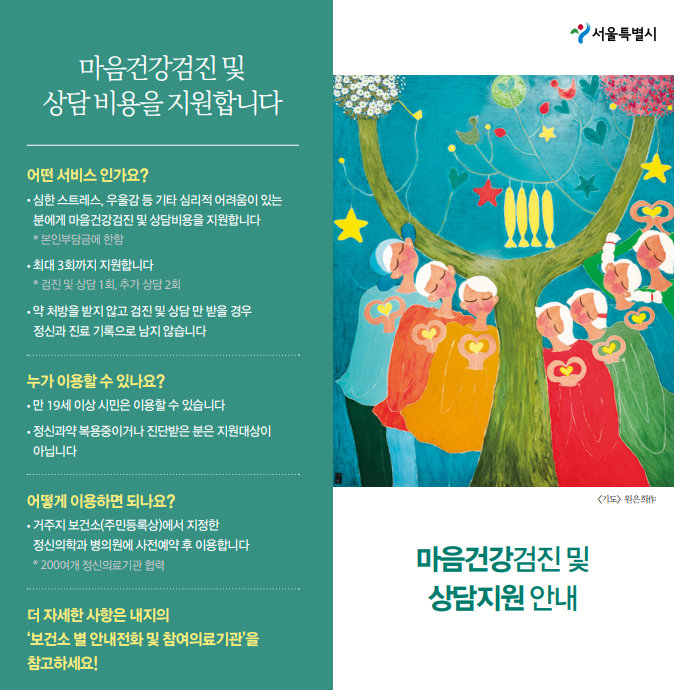 [시민일보 = 이대우 기자] 서울 강동구(구청장 이정훈)가 우울감, 스트레스 등 심리적 어려움을 겪는 주민들을 위해 무료 마음건강검진과 상담을 지원한다.