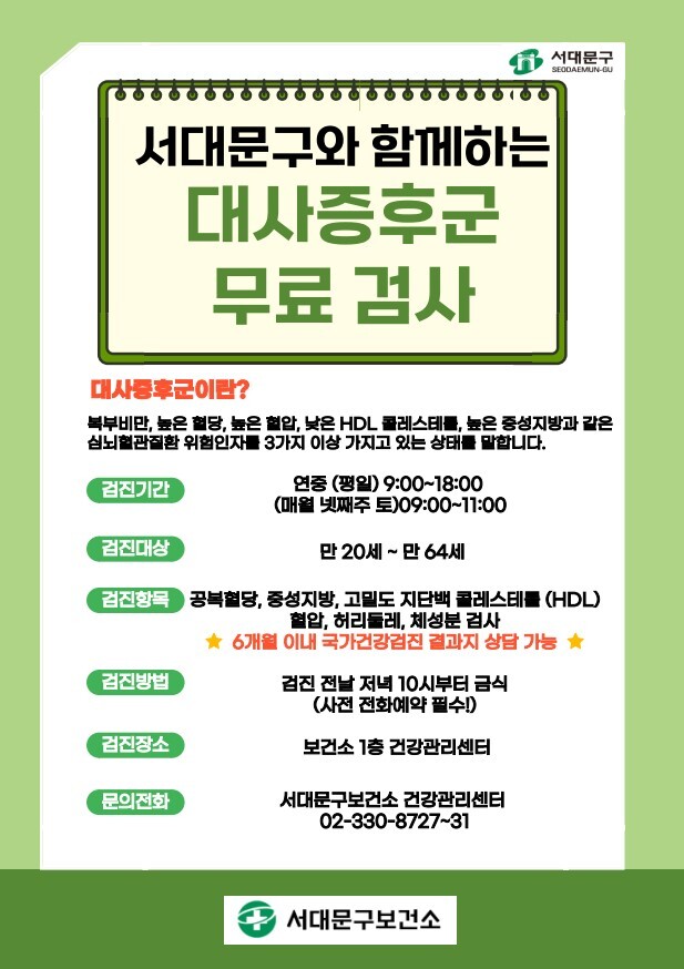 | ▲ 서대문구보건소 대사증후군 무료 검사 포스터. |
