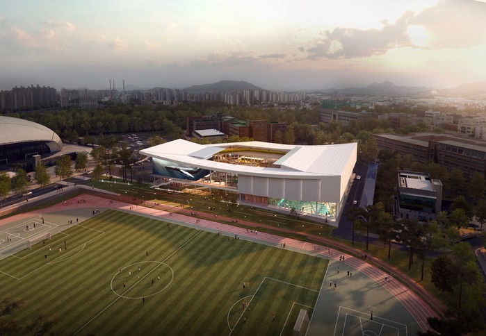 건물에는 수영장(경영풀장 길이25m×7레인, 다목적풀장(25m×35m), 체력훈련장, 스포츠기념관 등이 들어선다.