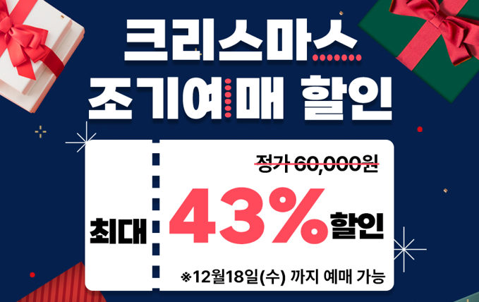 얼리버드 예매 할인은 12월 18일까지 진행되며, 그 이후 크리스마스 공연은 일반 가격에 예매가 가능하다. 특히 12월 25일 조조와 심야 시간대는 저렴하게 관람할 수 있다. 예매는 인터파크, 네이버 예약, 예스24, 카카오 예약 등을 통해 가능하며, 공연 기획사 파릇을 통해 문의 가능하다.