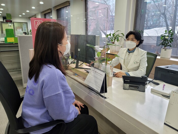 | ▲ 성동구가 구민들의 만성질환 예방을 위한 대사증후군 관리 서비스를 진행하고 있다. 사진은 건강매니저가 상담을 진행하는 모습 (사진=성동구청 제공) |