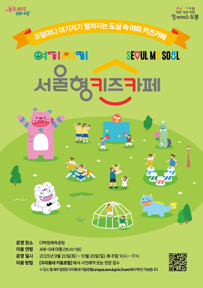 [시민일보 = 문민호 기자] 도봉구(구청장 오언석)가 주말마다 다락원체육공원에서 ‘여기저기 서울형 키즈카페’를 운영하고 있다고 19일 밝혔다.