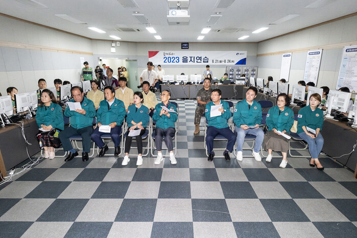 이날 추윤구 의장을 비롯하여 김미영 기획행정위원장, 김강산 복지건설위원장, 고양석 의원, 전은혜 의원, 김상배 의원, 김상희 의원, 고상순 의원은 2023년 을지연습 상황 등을 참관하고 사전준비태세를 점검하였으며 주관부서인 도시안전과로부터 훈련상황을 보고 받았다.