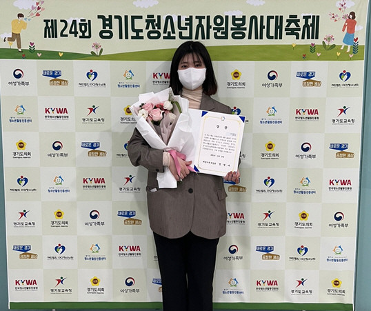 [고양=이기홍 기자] 고양시청소년재단 성사청소년문화의집은 교육기부멘토링 동아리 범블비 소속의 양아영(대학생) 청소년이 경기도가 주최하고 경기도청소년활동진흥센터가 주관한 제24회 청소년자원봉사대축제에서 대학생 청소년 개인 부분 여성가족부장관상을 수상했다고 밝혔다.