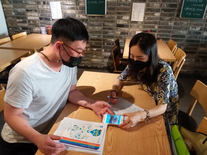 | ▲ 희망플래너와 소상공인의 상담 모습 (사진제공=송파구청) |