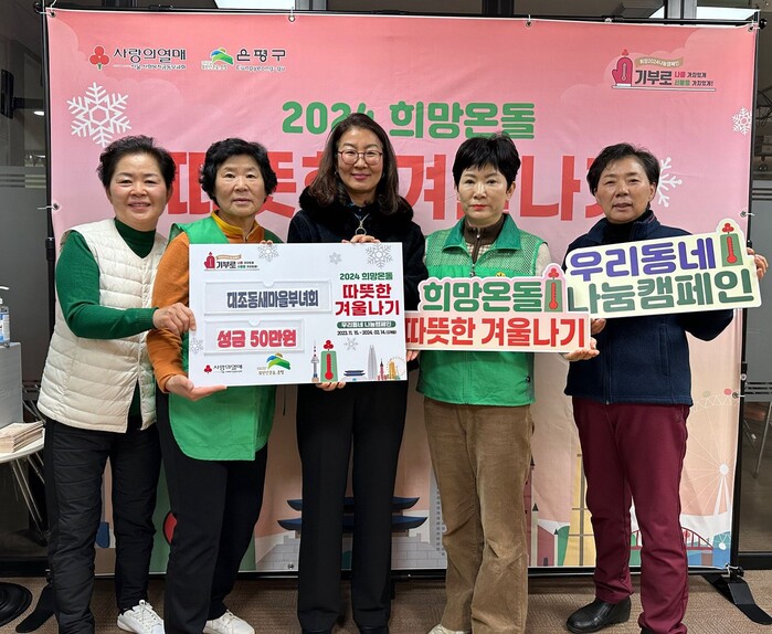 어려운 상황 속에서 춥고 힘든 겨울을 보내고 있는 이웃들이 따뜻한 겨울을 보내길 바라는 마음으로 대조동 부녀회원들이 소중한 마음을 담아 2024년 희망온돌 따뜻한 겨울나기 모금 활동에 동참했다.