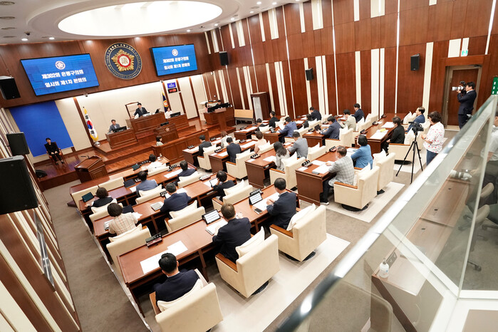 기노만 의장은 개회사를 통해 “이번 회기는 구민의 삶과 밀접한 안건처리에 집중하는, 짧지만 중요한 회기”라며, “여기 계신 모두가 함께 빈틈없이 검토하여, 구민 실생활에 더 많은 도움이 되도록 노력해달라"고 전했다
