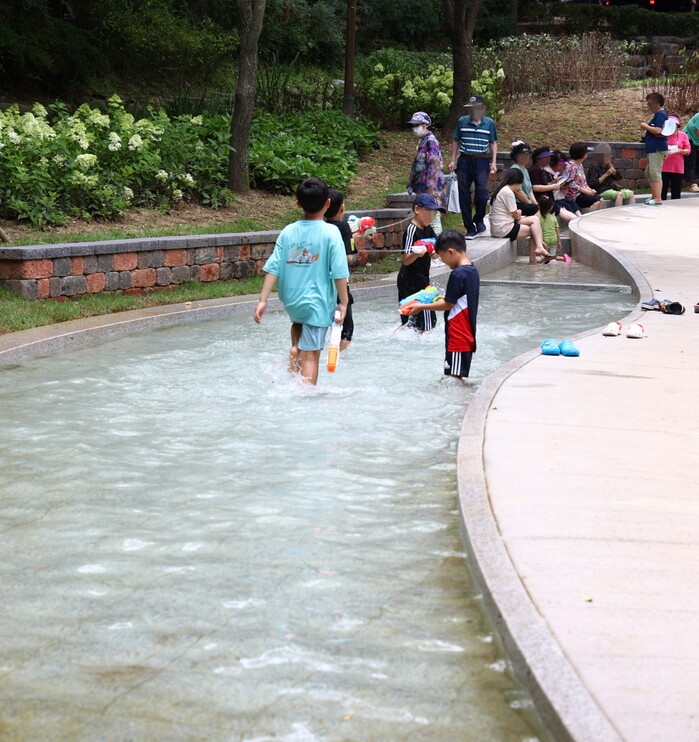 먼저 친수공간을 만들었다. 폭 0.8~3.5m, 길이 53m의 계류를 신설해 경관을 살리면서 주민들이 발을 담그고 쉴 수 있게 꾸몄다.