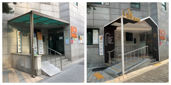 먼저, 휠체어나 보행보조기를 타고도 경로당을 쉽게 출입할 수 있도록 입구에 경사로와 안전손잡이를 설치했다. 또한 악천후를 대비해 현관에 캐노피를 설치하고 출입문을 자동문으로 교체해 노인들이 힘들이지 않고 출입할 수 있도록 했다.