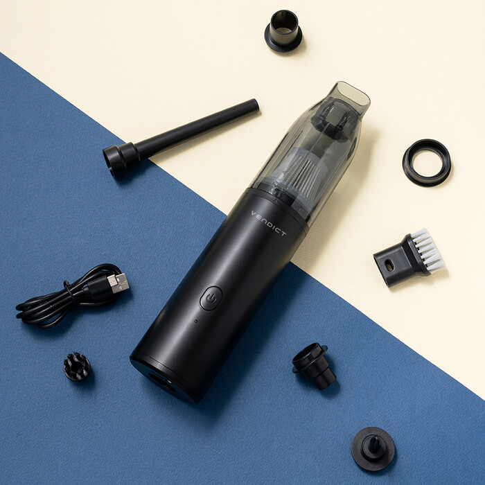 또한, 벤딕트 미니 차량용 청소기는 437g의 가벼운 무게로 휴대하기도 편하며 한손에 들어오는 크기로 차량에 구비해놓기도 편하고 사무실에서도 핸디 청소기로 사용하기 편하다. 타사제품들과는 다르게, LED 라이트 기능이 있어서 어두운 곳에서도 꼼꼼하게 청소가 가능하다. 충전의 경우에도 대중적으로 사용하는 C-Type 포트를 사용하여 완충 후 최대 30분가량 무선 사용이 가능하다.