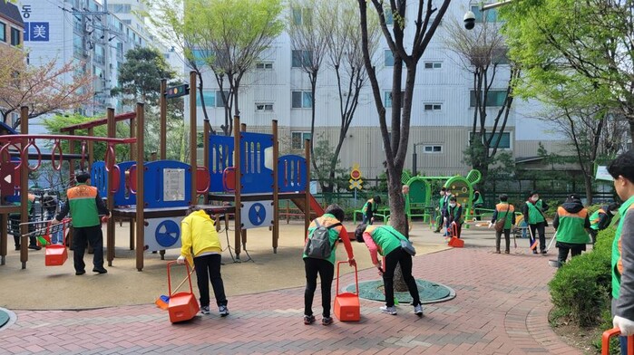| ▲ 어린이공원 대청소. (사진=강동구청 제공) |