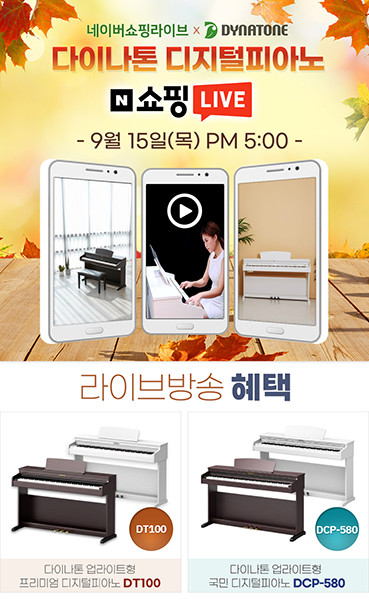 다이나톤 관계자는 “가을맞이 네이버 라이브방송 특가행사 진행하는 만큼 더 좋은 가격과 푸짐한 사은품 혜택을 준비 하였으니 이번 라이브방송을 통하여 전자피아노 구매를 생각하셨던 분들이 기회를 꼭 놓치지 않고 구매하시어 다이나톤과 함께 화목하고 즐거운 가정이 되셨으면 좋겠다”라고 전했다