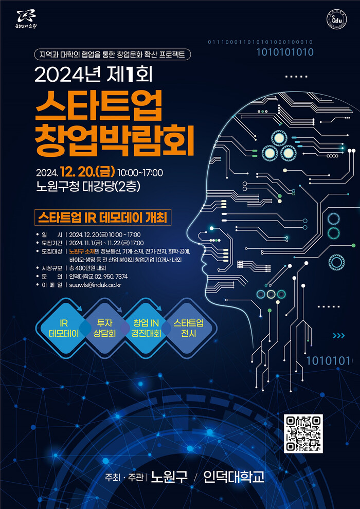 [시민일보 = 박소진 기자] 노원구(구청장 오승록)가 오는 20일 오후 1시 구청 2층 대강당에서 인덕대학교와 공동으로 ‘제1회 스타트업 창업박람회’를 개최한다고 밝혔다.