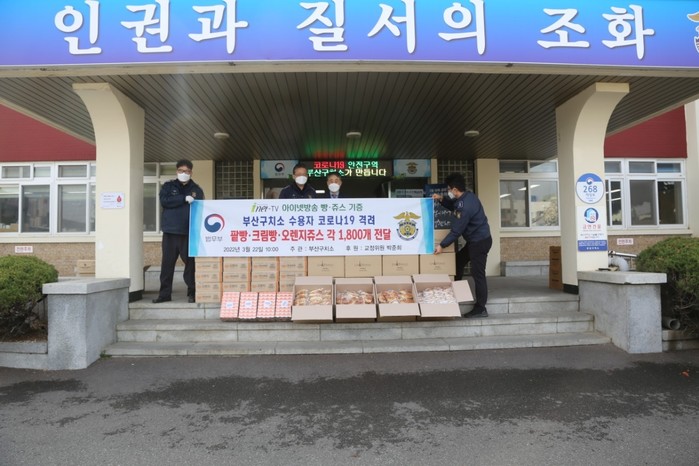이날 기증은 아이넷방송그룹 회장인 박준희 부산구치소 교정협의회 부회장의 후원으로 이뤄졌다. 박 부회장은 이날 빵과 음료수 각 1800개 450만원 상당의 간편식을 후원했다.