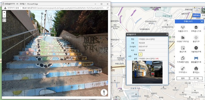 360°VR 안심로드뷰는 차량 통행을 할 수 없거나 막다른 길, 계단 도로 등 통행 불편지역에 대한 현장 정보를 알려주는 시스템이다.