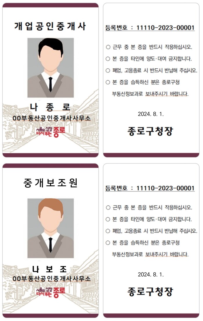 [시민일보 = 이대우 기자] 종로구(구청장 정문헌)가 무자격 불법 중개행위를 막고 소비자 보호를 위해 불법 중개행위 근절을 위해 중개업종사자 신분증 패용을 전면 시행한다.