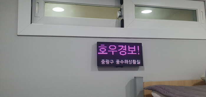 구는 이를 보완하기 위해 침수 취약가구 내에 ‘호우전용 예·경보시스템’ 전광판을 설치하고, 위험 상황 발생 시 중랑구 풍수해대책상황실에서 전광판을 통해 경고문구와 경고음을 전송해 실시간으로 위험을 알릴 예정이다.