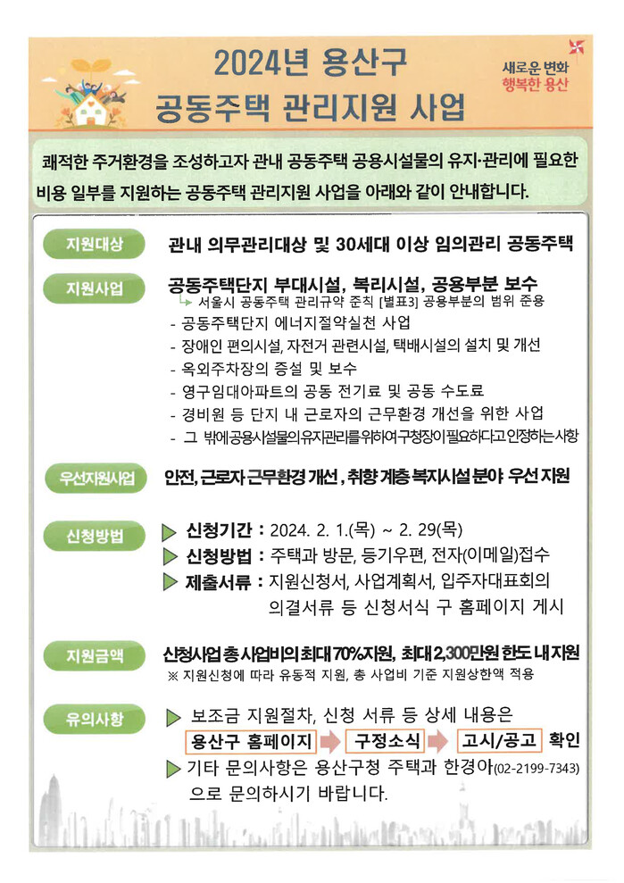 | ▲ 2024년 용산구 공동주택관리 지원사업 안내문. (사진=용산구청 제공) |