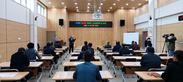 합천군은 14일 용주면 황가람농업농촌활력센터에서 ㈜합천유통, 합천RPC, 영호진미 재배단지 대표 40여 명이 참석한 가운데 합천쌀 명품화 사업 설명회 및 재배기술 교육을 실시했다.