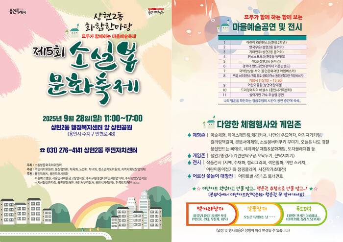 이인화 소실봉문화축제위원장은 “이번 축제가 상현동 주민 모두가 하나 되는 화합의 장이자, 지역 고유의 문화자산을 이어가는 뜻깊은 자리가 되길 바란다”고 말했다.