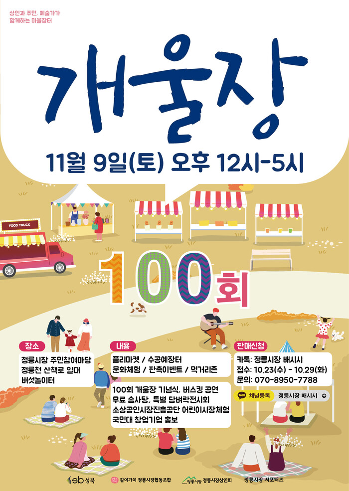 이어 ▲서경대학교 밴드동아리의 버스킹 축하공연 ▲정릉천 제방에 2024년 개울장 담벼락 사진 전시 ▲소상공인진흥공단의 어린이 전통시장 장보기 체험 ▲국민대학교 창업캠퍼스 홍보부스 ▲플리마켓 개울 등도 진행 예정이다.