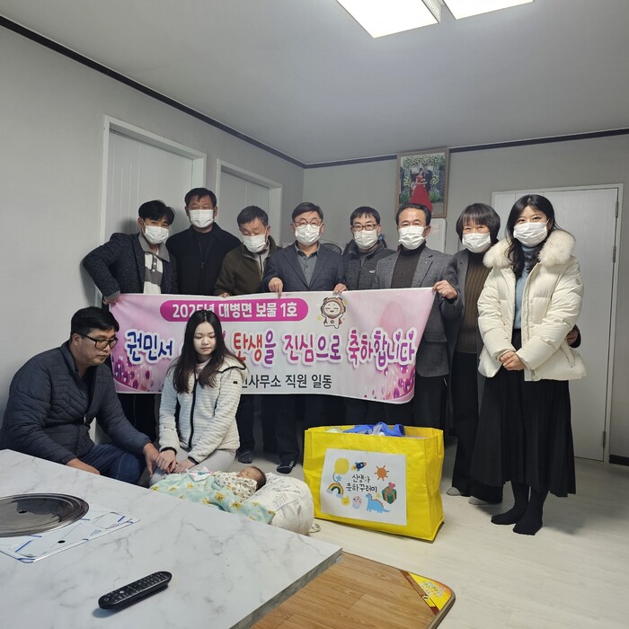 이동렬 면장은 “저출산으로 인한 인구감소가 사회문제로 대두되는 가운데 대병면에 새로운 가족이 탄생해 매우 기쁘다”며 “지역의 아이들이 건강하고 안전하게 자랄 수 있도록 면에서도 여러 지원방안을 마련하도록 노력하겠다”고 말했다.
