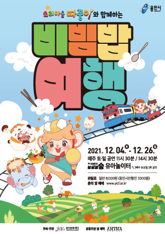 ‘소리마을 따꿍이와 함께하는 비빔밥 여행’은 용인문화재단과 아트라컴퍼니가 공동 제작한 국악 뮤지컬 공연으로 할머니에게 비빔밥 재료를 가져다 드리기 위해 심부름 길에 나선 비단이가 소리마을 친구들 따꿍이, 바우와 함께 기차 모리를 타고 비빔밥 재료를 찾아 떠나는 모험을 다룬다. 참여를 유도하는 이야기 전개, 다양한 국악 라이브 연주, 화면 밖으로 나온 귀여운 캐릭터들과 함께하는 전통 문화 교육을 통해 성향 발달이 중요한 영유아에게 올바른 음식 문화를 전달 할 예정이다.
