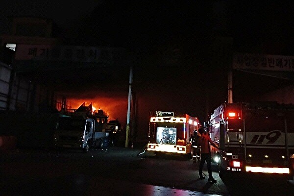 (인천=김형만 기자) 계양소방서는 7월 15일 오후 21시께 작전동의 한 폐기물처리공장에서 화재가 발생했으나 신고자가 소화기로 초기 진화했고 소방대가 완진했다고 밝혔다.