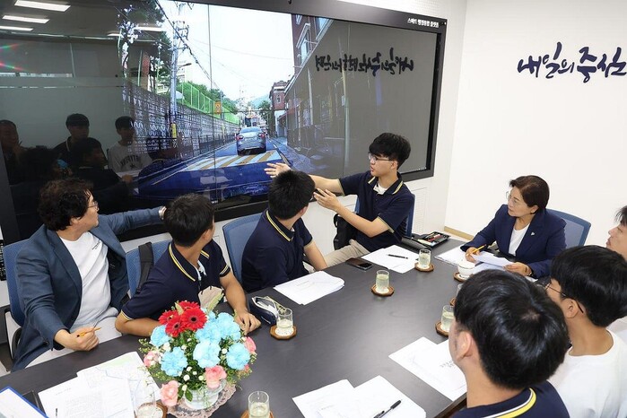 대성고등학교 학생들은 청소년 사회참여 프로그램을 통해 도출된 ‘선일초등학교 주변(갈현로 29길, 33길) 일방통행 운영’을 제안하고자 SNS를 통해 김미경 은평구청장에게 면담을 요청했다. 김 구청장은 이를 흔쾌히 수용하며 만남이 성사됐다.