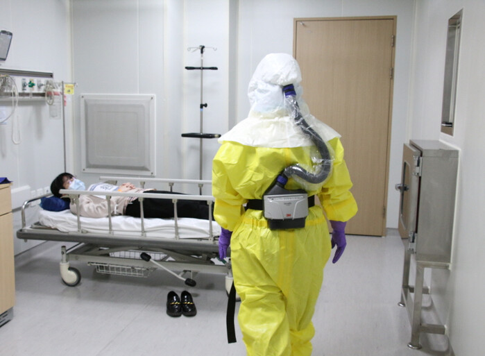 의료진은 여행력 확인, 환자 격리, 보호구 착용, 검체 채취, 보건소 신고, 전용 엘리베이터 이송 등 전 과정을 실제처럼 수행했고 이어 국가지정입원치료병상에서는 음압병실 준비부터 환자 인계, 초기 간호, 검체 전달, 환경소독, 의료폐기물 관리까지 격리병상 운영 절차를 점검했다.