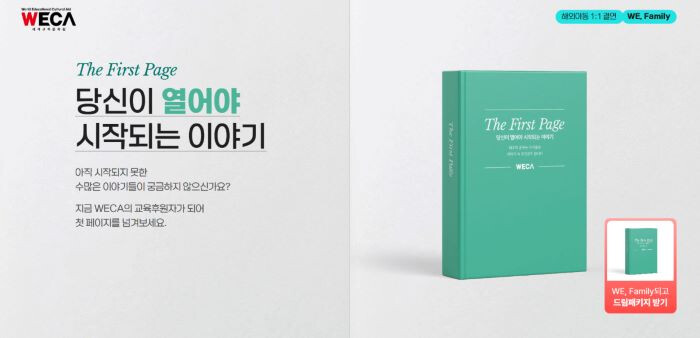이번 캠페인은 위카의 슬로건 ‘교육은 생명입니다’를 바탕으로 기획됐으며, ‘THE FIRST PAGE: 당신이 열어야 시작되는 이야기’를 주제로 한다. 후원자가 한 아이의 배움과 꿈을 열어주고, 그 여정을 함께한다는 의미를 담았다.