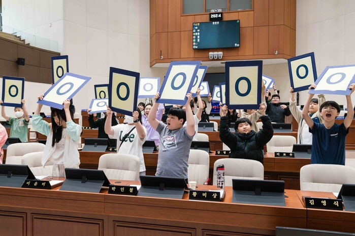 또한, 모의의회 체험에서는 임시회를 개회해 의장, 의원, 공무원 등으로 역할을 분담하고, 「스쿨존 어린이 보호에 관한 조례안」을 안건으로 상정했다. 학생들은 적극적으로 의견을 내고 토론에 참여했으며, 전자투표로 표결해 안건을 처리했다.