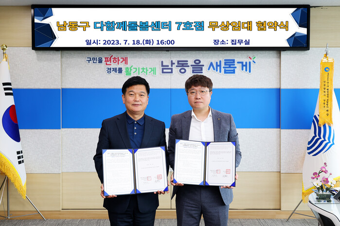 남동구는 최근 구청장 집무실에서 구월힐스테이트&롯데캐슬골드1단지아파트 입주자대표회의와 다함께돌봄센터 7호점 설치 및 운영에 관한 무상 임대 협약을 체결했다고 20일 밝혔다.