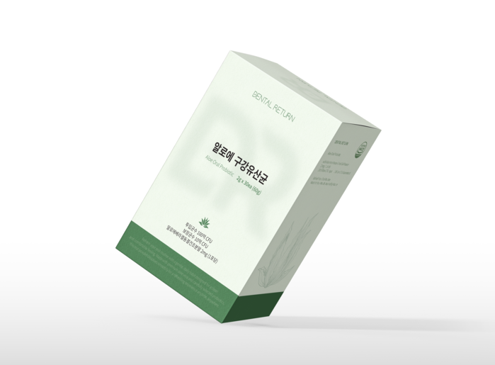'덴탈리턴 알로에 구강유산균'은 구강 특허 유산균을 1포당 100억 CFU 이상 함유한 것이 특징이다. 유해균 억제 및 구강 내 환경 개선을 돕는 유산균 외에도, 항염과 항균 작용과 관련된 알로에베라, 프로폴리스, 녹차, 생강 등의 원료가 함께 포함돼 있다.