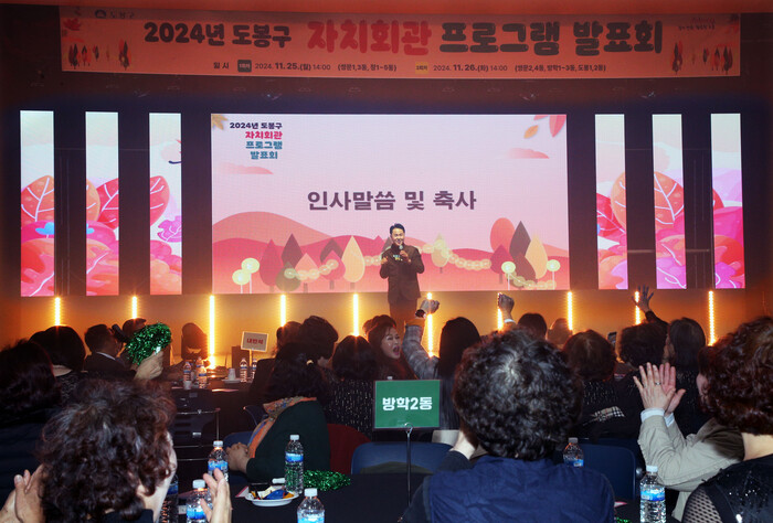 | ▲ 오언석 구청장이 ‘도봉구 자치회관 프로그램 발표회’에서 인사말을 하고 있다. (사진=도봉구청 제공) |