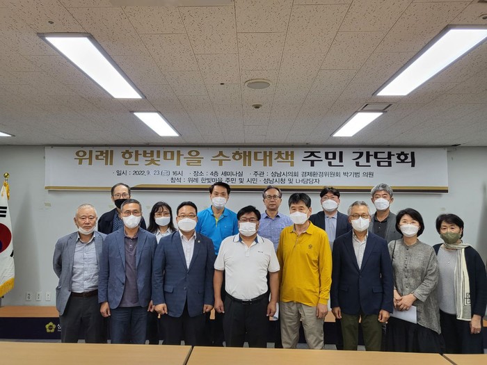 [성남=오왕석 기자] 지난 9월 23일 4시 성남시의회 세미나실에서 수해대책과 재발방지책을 논의하기 위해 위례 한빛마을 수해대책 2차 주민간담회가 개최되었다.