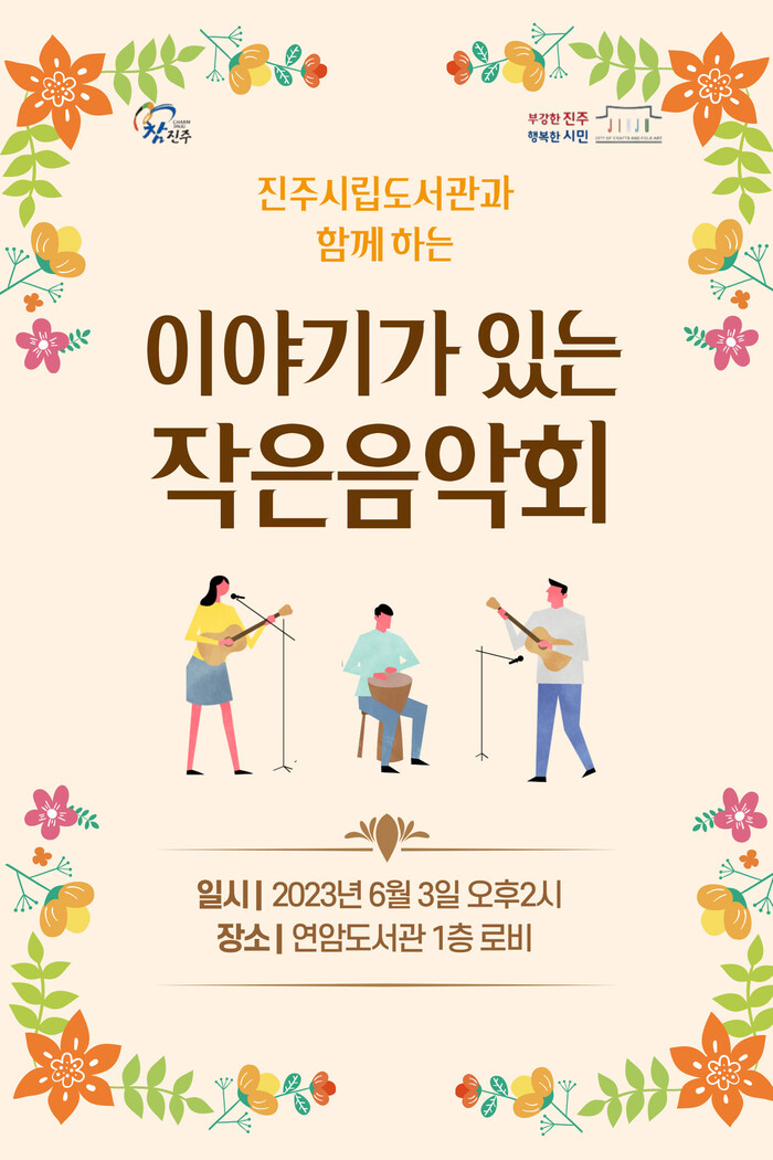 도서관 관계자는 “이번 음악회가 도서관을 찾는 시민들이 바쁜 일상으로 힘들었던 시간을 잠시 내려놓고 마음을 달랠 수 있는 자리가 되길 바란다”며, “앞으로도 진주시립도서관은 지역의 복합문화공간으로서 역할을 다하기 위하여 다양한 문화행사로 시민들을 찾아갈 예정이다”라고 말했다.