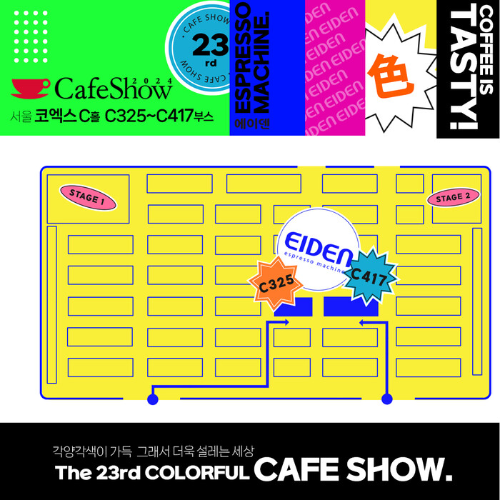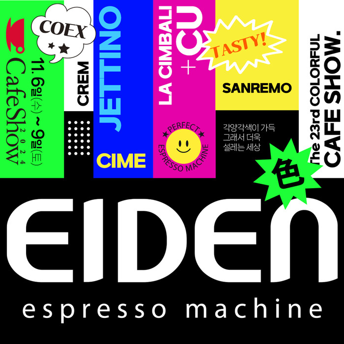 커피산업의 발전을 위해 다양성과 포용성을 조명하는 올해의 주제에 맞춰 에이덴은 ‘Colorful Cafeshow, Colorful EIDEN’라는 테마로 전시를 준비했으며, 에이덴이 국내 독점 공급하고 있는 ‘제티노 코리아’ 와 공동으로 부스를 선보인다.