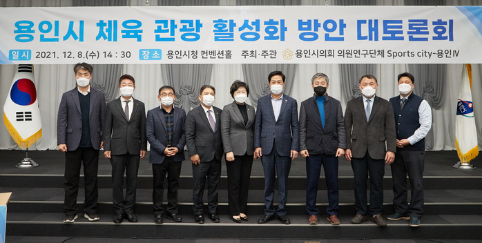 [용인=오왕석 기자] 용인시의회 의원연구단체 「Sports-City 용인Ⅳ(대표 남홍숙)」는 지난 8일 오후 2시 30분 시청 컨벤션홀에서 김기준 의장, 백군기 시장, 조효상 용인시체육회 회장, 오상준 용인시관광협의회 회장 등 체육 및 관광 관계자 약 50여 명이 참석한 가운데 ‘용인시 체육 관광 활성화 방안’을 주제로 대토론회를 개최했다.
