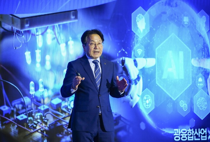 | ▲ 강기정 광주광역시장이 지난해 9월10일 오후 서울 포시즌스호텔에서 열린 ‘2024 시도지사 정책컨퍼런스’에 참석해 광주 대표산업인 인공지능(AI)과 미래차 정책에 대해 발표하고 있다. / 광주광역시 제공 |