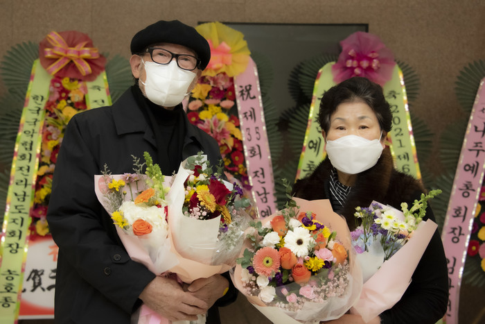 | ▲ 한국예총전라남도연합회가 목포 지역에서 활동하는 사진작가 박종길 교수와 김광영 작가를 원로예술인으로 추대하는 행사를 개최했다.(사진=박종길 교수 김광영 작가 부인 문태자 여사)출처=한국사진작가 협회 목포시지부 |