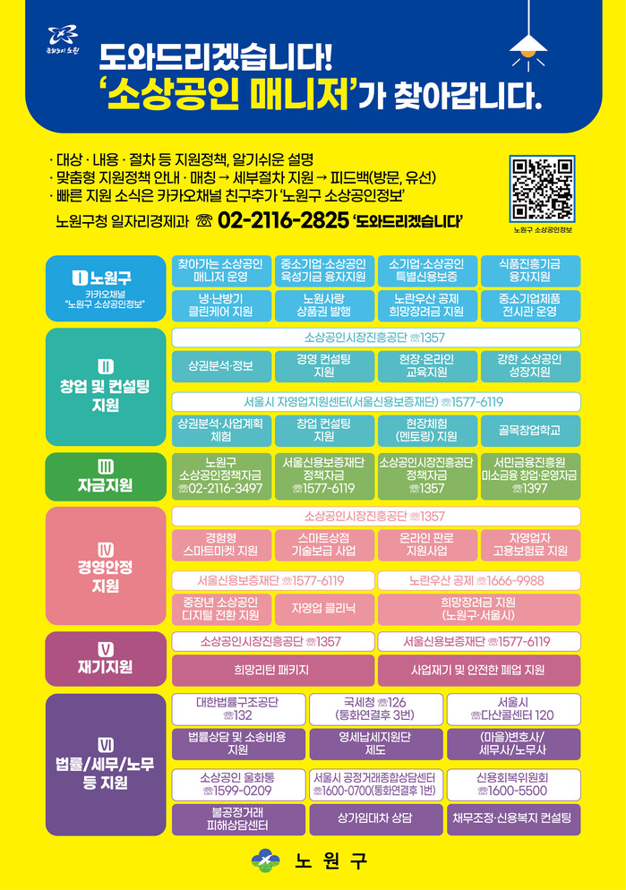 이를 위해 ‘노원구 소상공인정보’ 카카오톡 채널도 운영한다. 산재 된 유관기관 지원 소식을 신속하고 종합적으로 전달하기 위해서다. 구는 채널을 운영하며 지속적으로 온·오프라인 피드백을 제공할 계획이다.