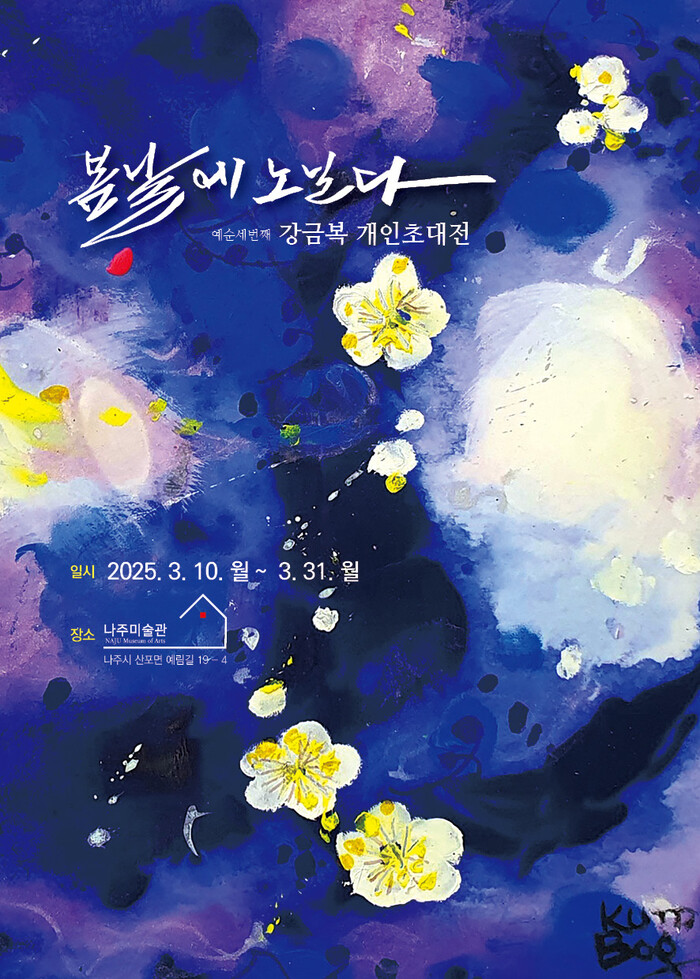 영산강이 도도히 흐르는 역사의고장 나주에서 봄 소리를 맞이 하는 한폭한폭에서 봄의 청취를 맘껏 만 킥 할 수 있는 초대전으로 기대된다.