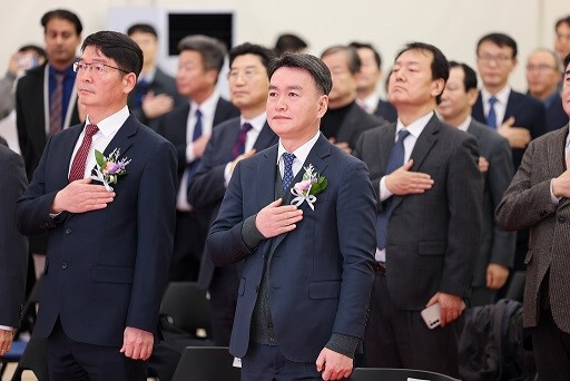 | ▲ 이종욱 관세청 차장(가운데)이 20일 부산세관에서 열린 청사 리모델링 준공 기념식에서 참석자들과 국민의례를 하고 있다. |