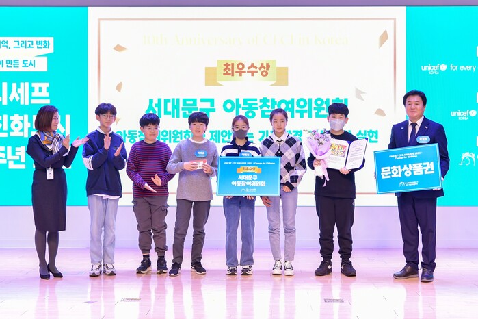 [시민일보 = 홍덕표 기자] 서울 서대문구(구청장 이성헌)는 최근 유니세프한국위원회가 추진한 아동친화도시 우수사례 공모에서 ‘아동참여위원회가 제안하는 기후위기 개선방안 실현’으로 최우수상을 수상했다고 19일 밝혔다.